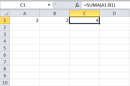 Ejemplo de una fórmula SUMA aplicada en Excel.