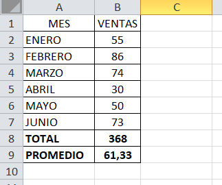 Imaginemos que tienes una tabla con ventas mensuales y quieres calcular el total y el promedio.